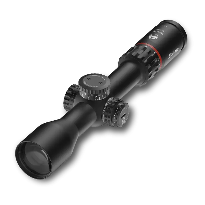 The second-generation Veracity features Burris’ new R.E.D. Industrial Design, highlighted by a distinctive red ocular accent and aggressive, high-traction knurling on the magnification ring and turret caps. The streamlined, compact profile improves balance and handling without sacrificing durability.